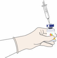 • NUZYRA необходимо восстановить стерильной водой для инъекций, а затем дополнительно развести для инъекций в асептических условиях следующим образом: 2 флакона (200 мг) до концентрации 2 мг/мл и 1 флакон (100 мг) до концентрации 1 мг/мл¹.