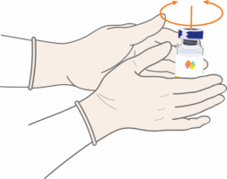 • При необходимости переверните флакон, чтобы растворить оставшийся порошок, и аккуратно вращайте, чтобы предотвратить образование пены.